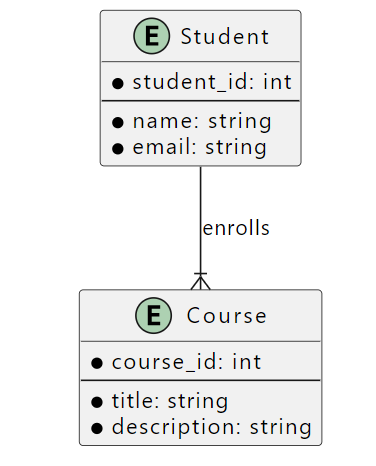 | Customer 엔터티 | + id (PK): id 필드는 기본 키(Primary Key)로 설정되어 있습니다. name, mail: 일반 속성입니다. |