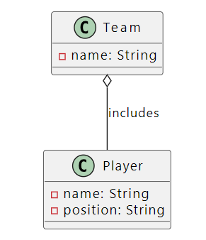 집합 관계는 전체와 부분 간의 느슨한 관계를 나타냅니다. 전체는 부분을 포함하고 부분은 독립적으로 존재할 수 있습니다. "o--" 빈 마름모로 표시됩니다.